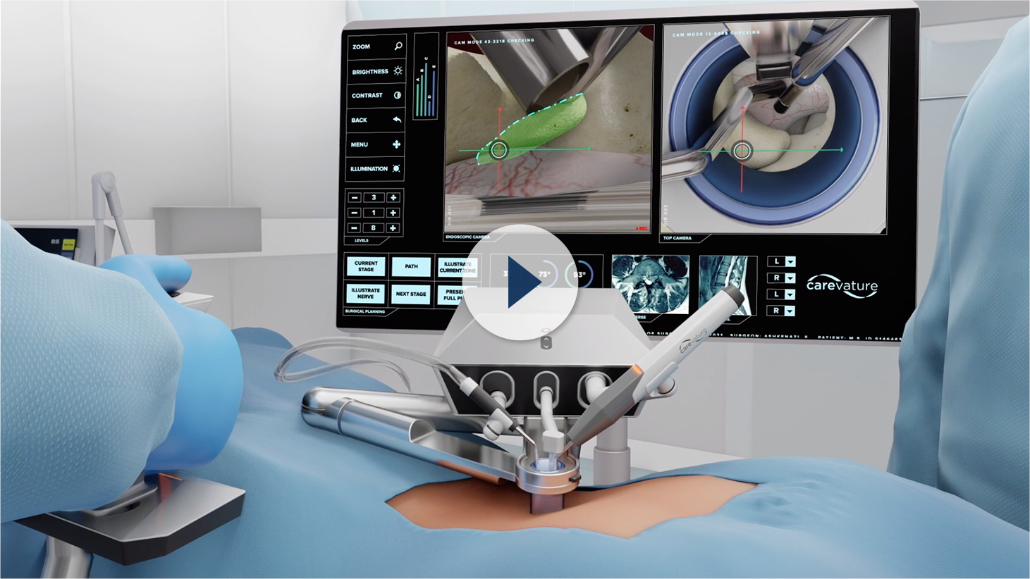 Carevature is developing the first and only spinal surgery robot for Spinal Decompression, utilizing its proven proprietary Dreal® suite of curved at the tip and powered, single-use end-effectors, delivering unprecedented safety, stability, and precision with cutting-edge vision-guided control. The surgeon-driven robot is designed to preserve healthy tissue while safely and precisely removing compressive pathology with pinpoint accuracy.